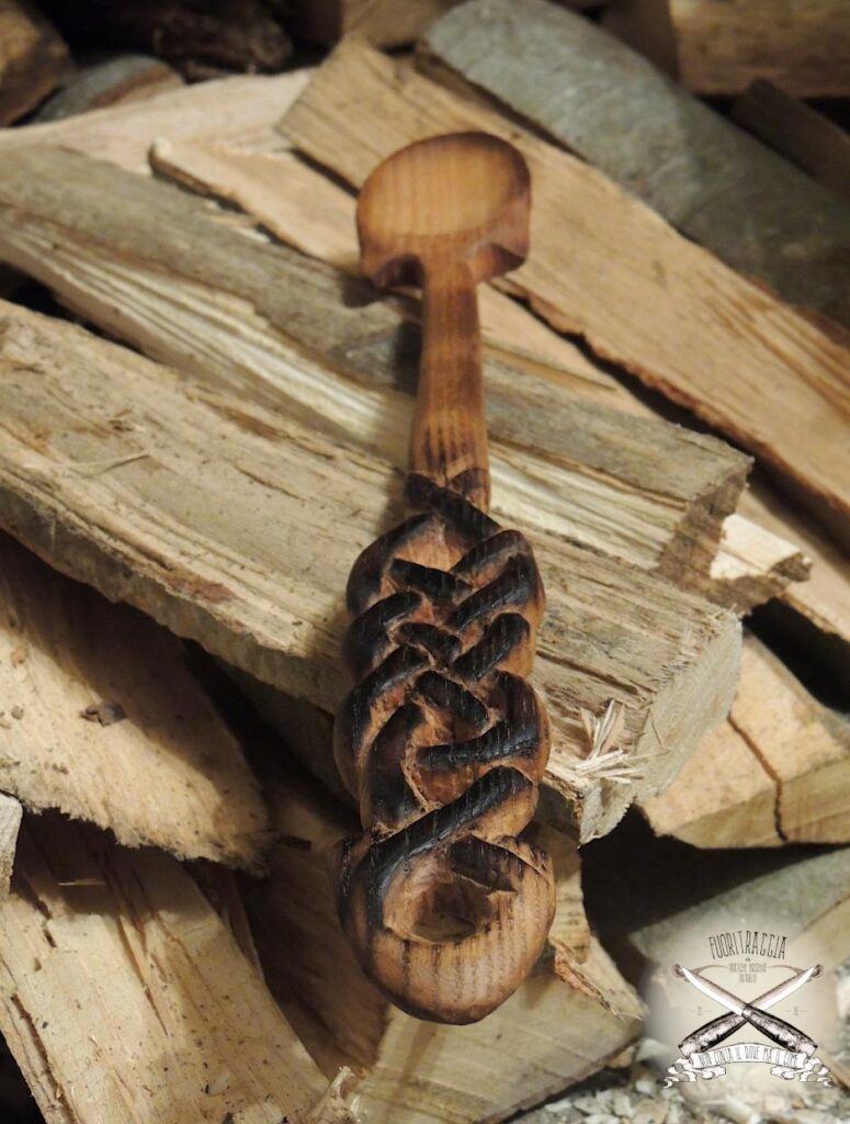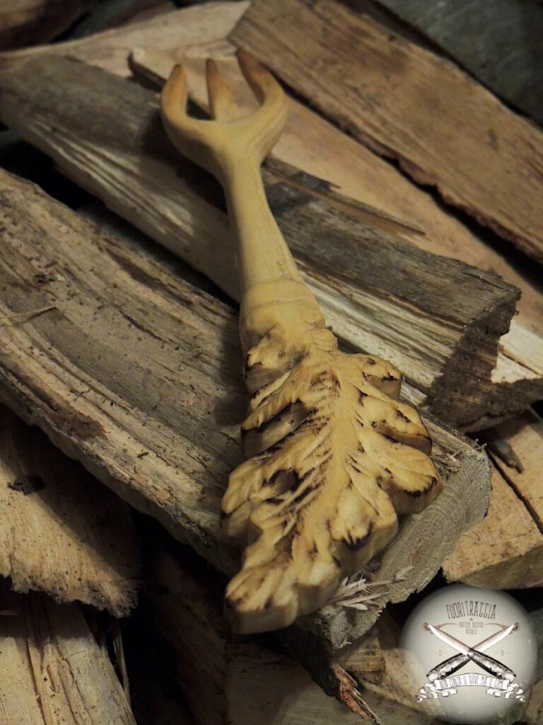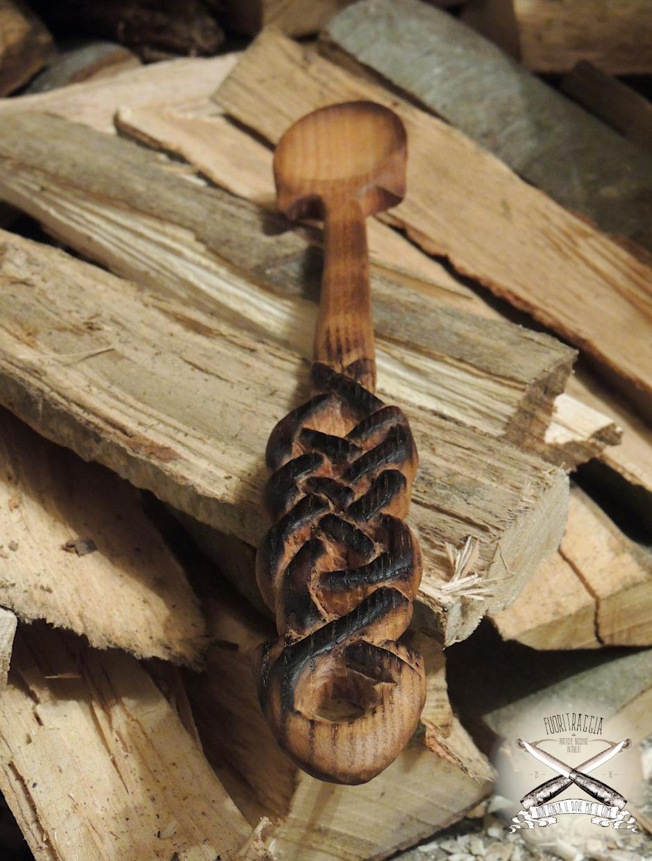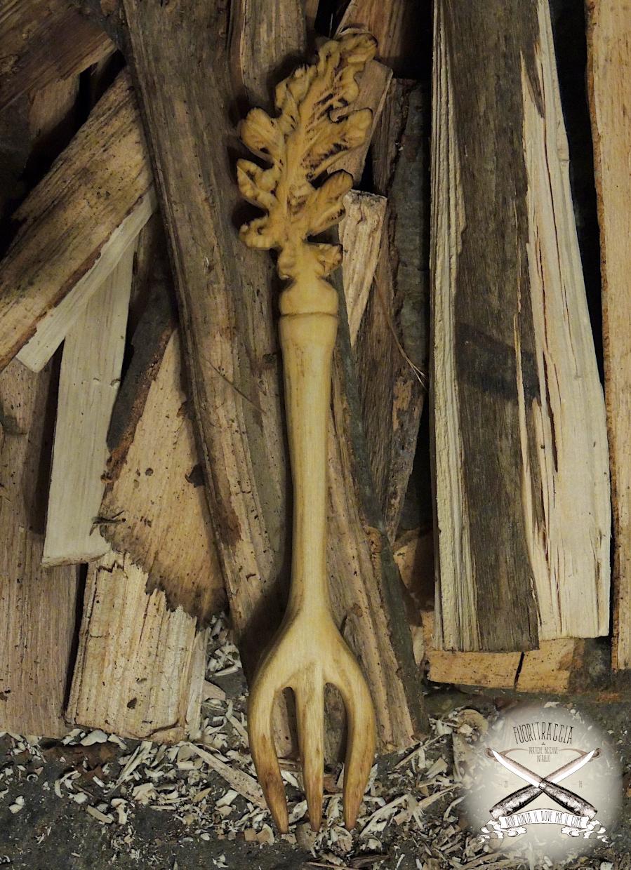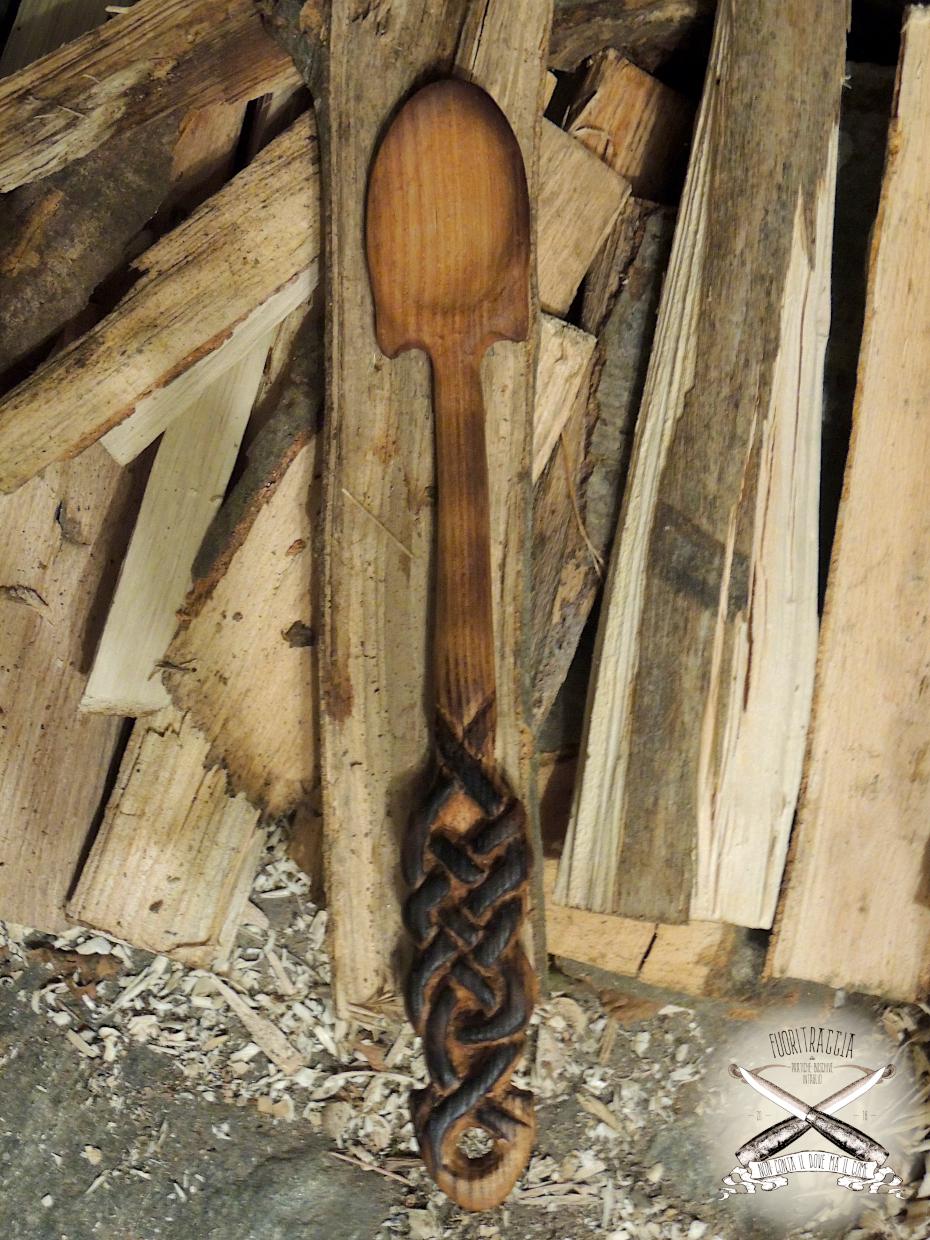 Un amico mi ha commissionato un set da cucina, nello specifico un cucchiaio ed un forchettone, le decorazioni dovevano afferire al modo celtico et voilà, cucchiaio in Acacia e forchettone in Faggio. Normalmente non amo lavorare su ordinazione ma in questo caso devo dire che mi sono divertito, soprattutto nella realizzazione della foglia di Quercia -della quale vado fiero- intagliata sul manico del forchettone, non avevo mai realizzato questo tipo di soggetto e sono molto soddisfatto.
